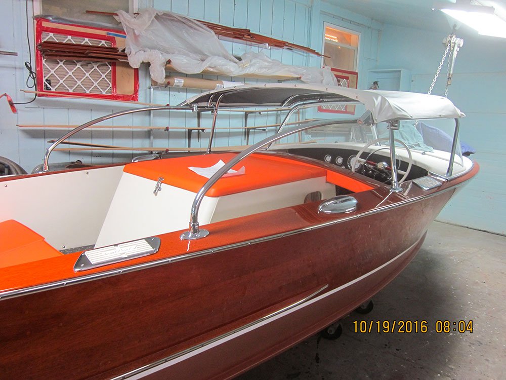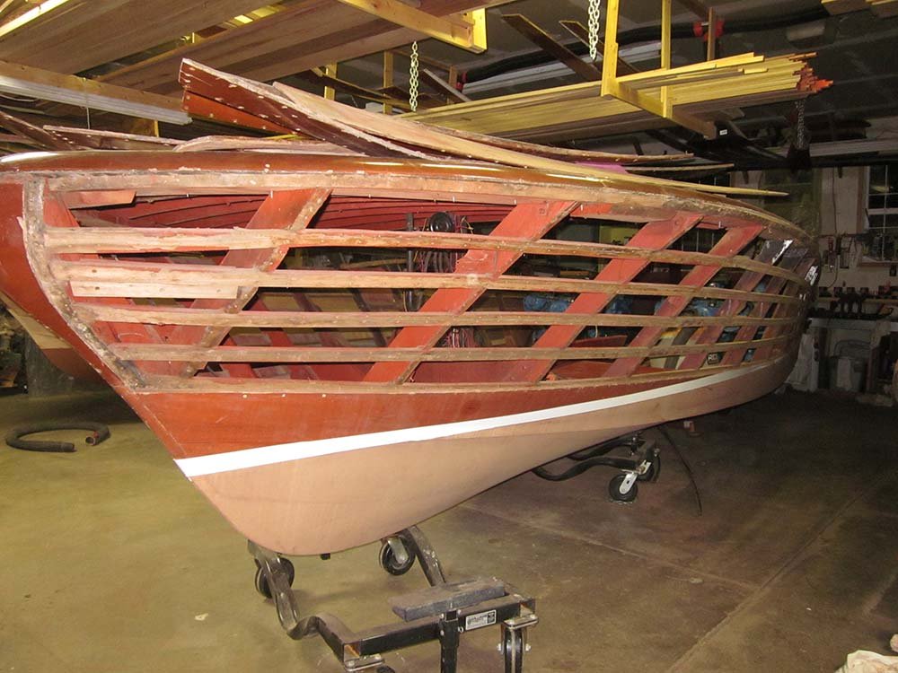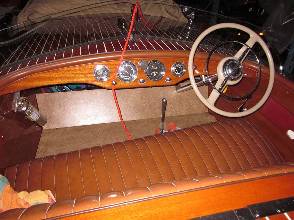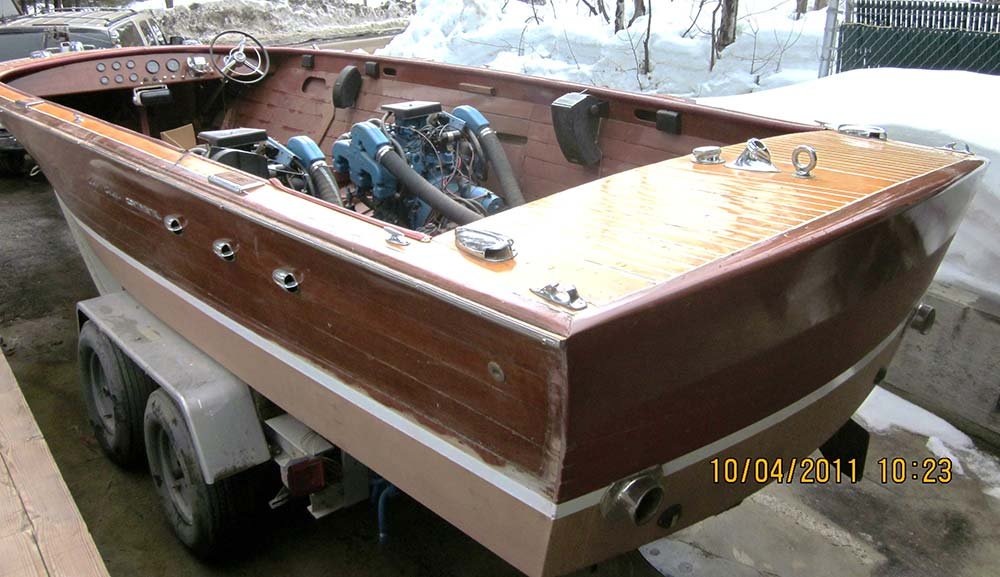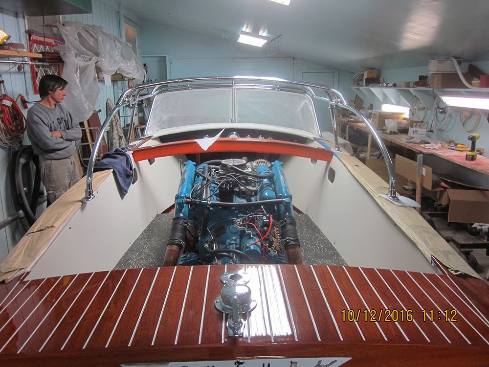 It sat from 1972 to 2013 when i was told of the boat. I purchased it on the spot without seeing it . MBW completely disassembled the boat, installing a 3M5200 bottom, saved all the original top side and deck planking. Re installed with new fasteners, The original interior was detailed and installed, the 430 Lincoln motor was rebuilt and installed. Please go to our Awards page for the rest of the story.. Enjoy! We did. Check out what Awards this beautiful boat has won already here »