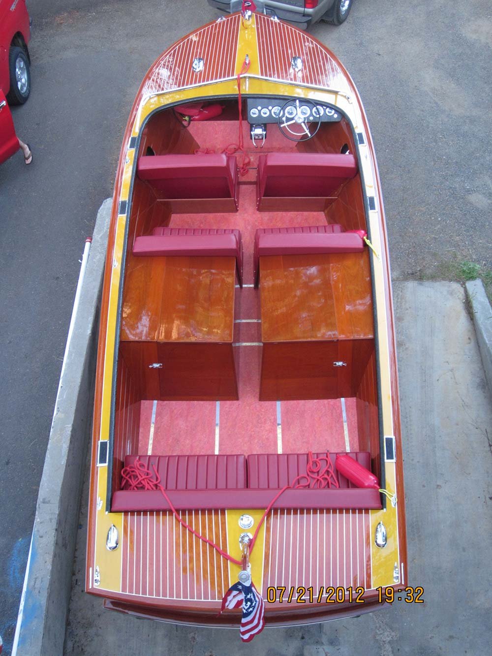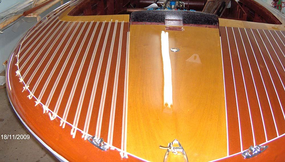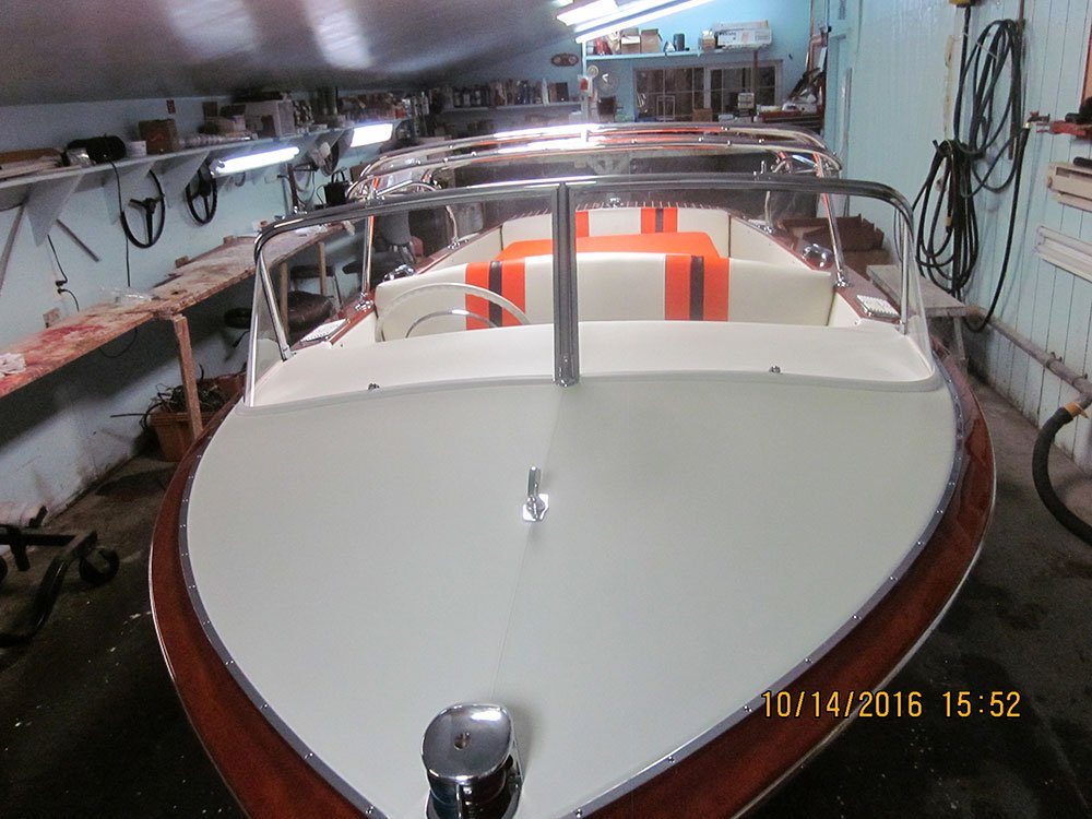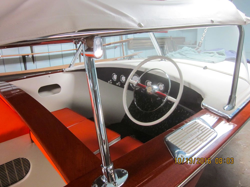 It sat from 1972 to 2013 when i was told of the boat. I purchased it on the spot without seeing it . MBW completely disassembled the boat, installing a 3M5200 bottom, saved all the original top side and deck planking. Re installed with new fasteners, The original interior was detailed and installed, the 430 Lincoln motor was rebuilt and installed. Please go to our Awards page for the rest of the story.. Enjoy! We did. Check out what Awards this beautiful boat has won already here »