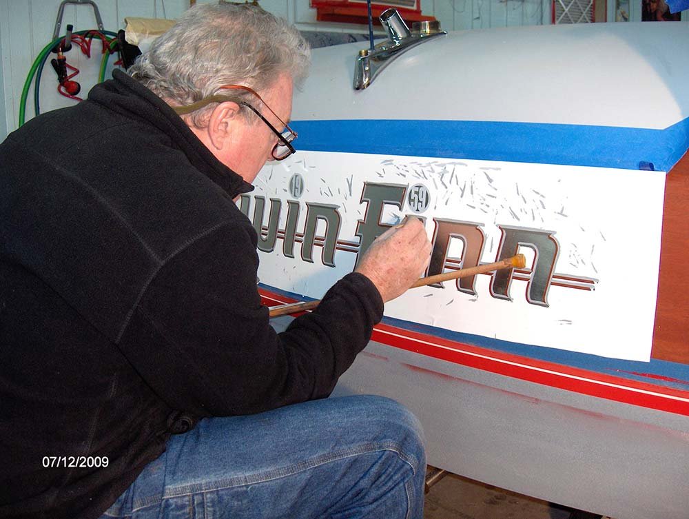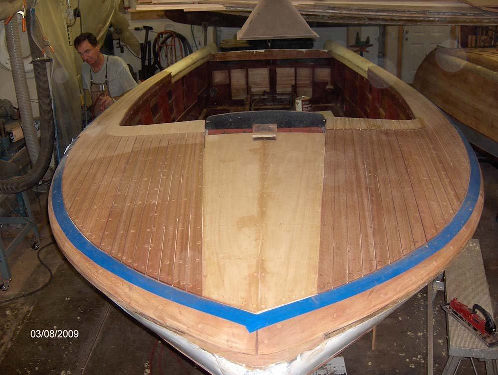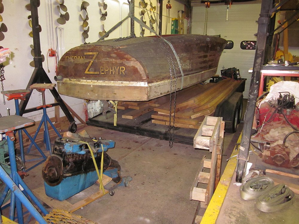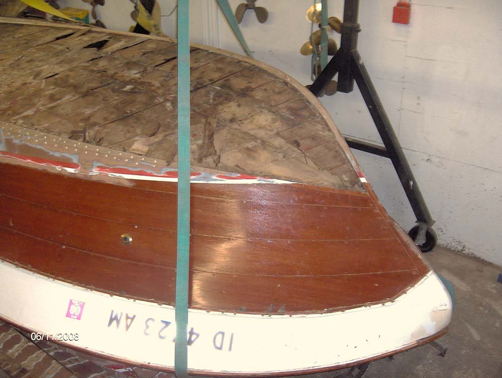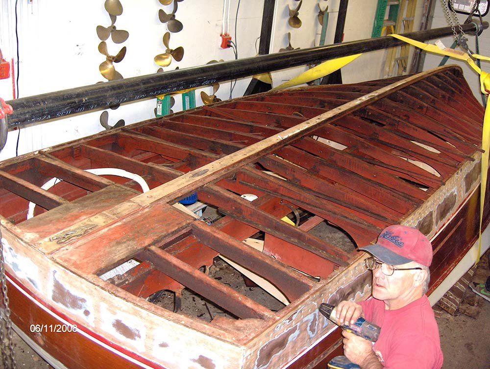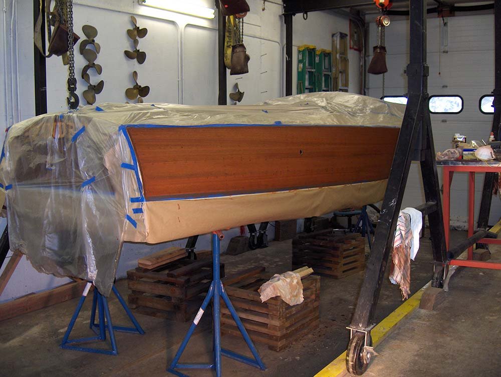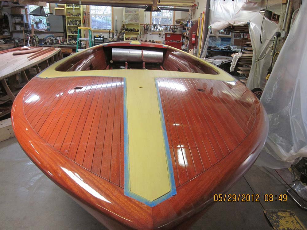 Lloyd Kirchner, originally form Huston TX, was referred to McCall Boat Works back in 2008 while attending a seminar in Boston, Massachusetts. Later that year, McCall Boat Works received the boat with full intention of restoration. In a matter of weeks, the economy crashed, closing Lloyd’s businesses and forcing him to keep the boat in storage and putting a hold on the restoration project.