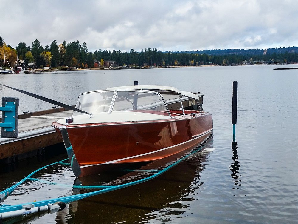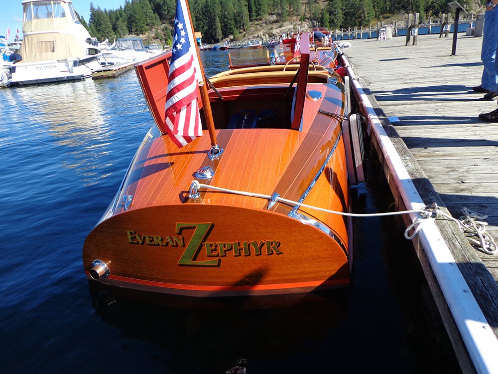 This boat has moved around back in its early days. From Genesco NY, to San Diego CA in 1985, she made her way up to McCall Idaho in 2011. That is when Gary and Cathy Lyons from Boise ID contacted Don and his crew at McCall Boat Works to completely restore the Everan Zephyr.